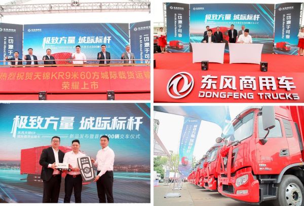 4月25日,以“极致方量 城际标杆”为主题的东风天锦KR城际载货运输车新品发布暨首批300辆交车仪式活动在四川·成都成功举办,在四川启城供应链管理有限公司董事长胡松;东风商用车有限公司党委委员、纪委书记曾苗;东风商用车有限公司营销公司党委书记高超,副总经理王冀,西部区总经理仝三民,四川商代处总经理宋怀金;东风龙擎动力有限公司党委书记陈小迅;东风专用汽车有限公司总经理蔡伦新;四川铭瑜汽车销售服务有限公司董事长王太波等领导见证下,专为城际快递物流运输定制的新品——东风天锦KR城际载货运输车正式发布。