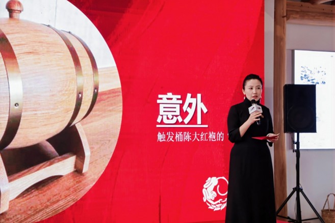 在主题演讲环节,猴牌老袍庄园主理人汪静宜发表了《守陈创新,再造老袍》主旨演讲,全面分享了桶陈大红袍的缘起、灵感来源、创新发展及最新成果。
