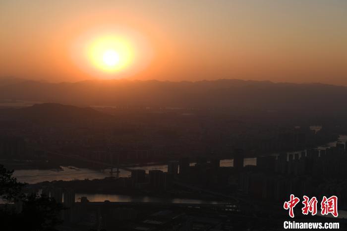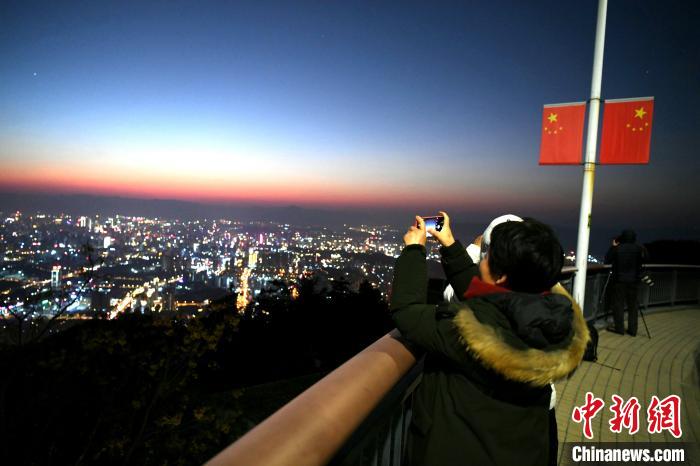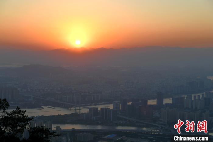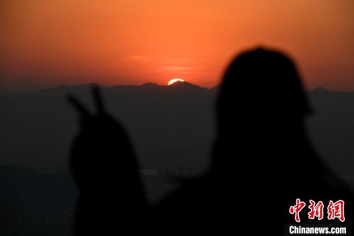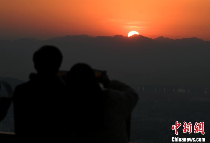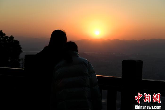 市民鼓山观看日落,期盼新年到来。 王东明 摄
