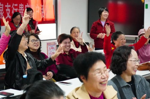 活动以趣味互动开场,现场气氛热烈。“冬天有三问”破冰游戏中,长者们踊跃抢答、笑声不断;“手轨传筷”协作游戏中,大家分组配合、互相鼓励,仿佛重拾了童年的游戏乐趣。张伯伯一边传递筷子一边笑道:“这好多年没这么玩过了,好像又年轻了一回!”除了温馨有趣的互动环节,活动还贴心设置了多项便民服务。志愿者为长者们细致讲解金融风险防范措施及防诈骗知识;在职党员则现场开展电梯安全宣传,并组织有奖问答活动,助力老年人提升日常安全意识。这些暖心服务,让长者们在感受节日氛围的同时,也为生活增添了一份切实保障。
