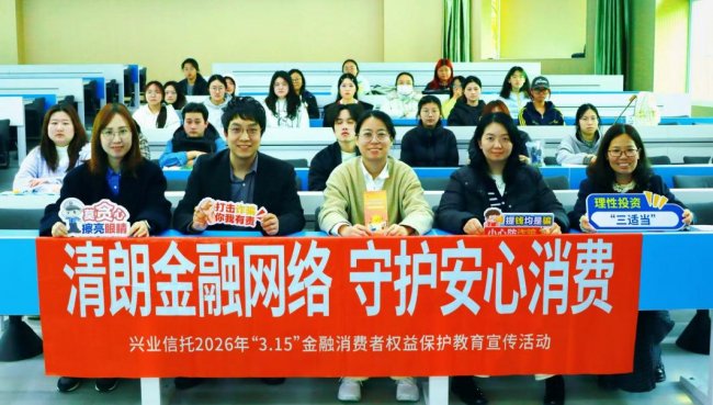 为积极落实福建金融监管局“3·15”金融消费者权益保护教育宣传活动要求,2026年3月12日,兴业信托前往闽江大学举办“‘3·15’权益护航——校园金融安全守护行动”专场教育宣传活动。本次活动以普及金融知识、维护金融消费者八项权益、筑牢反诈防线为核心,为青年学子呈上一堂专业、实用且贴合实际的金融安全课程。
