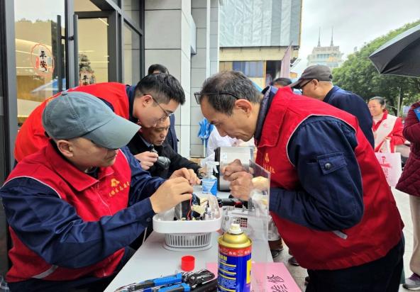 活动现场,便民服务与金融教育宣传深度交融,温情与专业相得益彰,人气满满、暖意融融。义剪摊位前,理发师为老年居民修剪心仪的发型,将贴心关怀在指尖传递;义诊区域内,医护人员认真为居民测量血压、问诊把脉、讲解眼部健康养护知识,用专业与耐心守护群众健康。志愿者还为一线快递员、外卖骑手送上关怀与问候,普及反诈防骗等知识,传递城市温度。