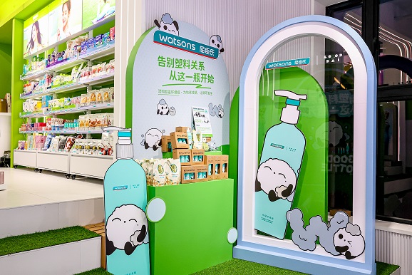 适逢世界地球日来临之际,屈臣氏携手潮牌GOODBAI,在快闪店内特别打造萌趣十足的主题专区,并推出可重复使用的铝制环保补充瓶GOOD BOTTLE,购买即赠洗护补充装,方便顾客灌装旅途所需的洗护用品,在“轻装上阵”之余,为地球减少“塑”缚。