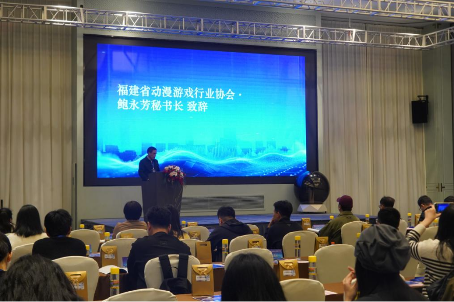 启动仪式上,鲍永芳秘书长代表主办方致辞。他表示,协会将持续以赛事为桥梁,深化产教融合、校企合作,坚持以赛促学、以赛促创,为青年学子搭建成长平台,助力福建数字创意人才培养。面对 AI 技术浪潮,协会将推动技术与产业深度融合,赋能动漫游戏行业高质量发展。