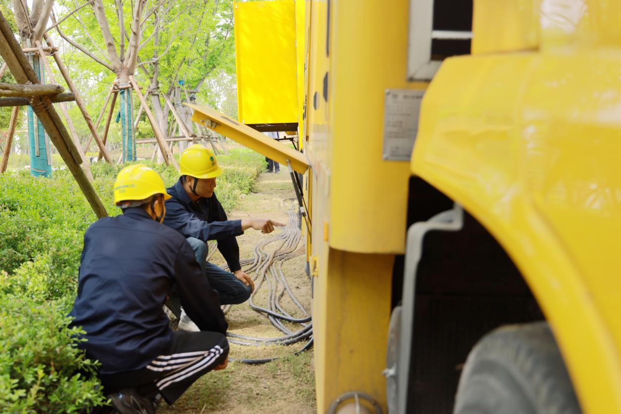 在黄帝故里园区西北角,一辆明黄色重型特种厢式供电指挥车内同样紧张忙碌。来自国网郑州供电公司、国网新郑市供电公司的十余名保电专业人员屏气凝神,紧盯屏幕上各点位电流电压运行参数,与场内外各保电值守点实时联动。