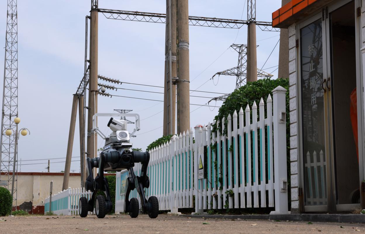 看得见的是现场科学排布的多重保电防线,看不见的则是更为严密的电网运行体系。距离黄帝故里园区约1.6公里的110千伏城后变电站、2.9公里外的110千伏轩辕变电站,是拜祖大典保电的“大后方”。在城后变电站,智能巡检机器狗正式“上岗”,它搭载高清摄像头、红外热成像仪与AI识别模块,可自主完成设备巡视、温度监测、仪表读取、异常告警等任务,灵活穿梭于设备之间,有效弥补人工巡检盲区,让变电站运维更智能、更高效、更安全。