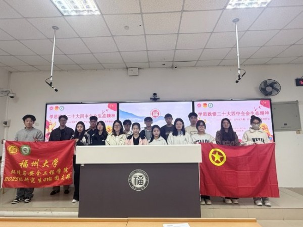 为深入学习贯彻党的二十届四中全会精神,把“制度是现代化的保障,青年是制度的践行者”落到专业学习与实际行动中,福州大学环境与安全工程学院2025级研究生4班团支部以“生态文明制度体系”为主线,聚焦“完善生态文明基础制度、健全生态环境治理体系、推动绿色低碳发展”等核心要求,开展为期3周的团立项实践,形成“学—研—行—创”一体化育人链条,推动理论学习、专业实践与社会服务同频共振。