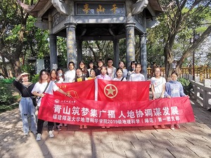 福建师范大学地理科学学院2019级地理科学(师范)第一团支部在团支书张雨玲的组织下于2020年10月至2021年4月,在安徽巢湖、福州乌山、屏山、于山、福建师范大学旗山校区开展了“青山筑梦集广福,人地协调谋发展”的团立项活动。